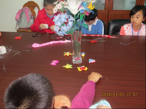 为丰富云顶翠峰小学生的课外生活,同时为学生提供一个自主发展的时间与空间,我处联合皇岗社区服务中心,将于2014年3月推出“第二课堂”活动(课程类型包括手工坊、绘画、书法、机器人拼装、经典诵读;授课老师是皇岗社区服务中心社工戓皇岗社区和深圳高职院义工;上课时间逢周三、周五16:40-17.40; 上课地点在云顶翠峰一期书画室;每月更换一个课程类型;活动将在今年7月30日结束)。通过组织丰富多彩的文化、艺术、科技活动,激发学习兴趣,发展个性特长促进学生身心健康发展,提升学生动手操作能力,实践能力和合作创新能力,下面组图是这次活动的第一课程《手工坊》的上课场面(课程内容包括软陶、丝网花、超轻粘土制作)。